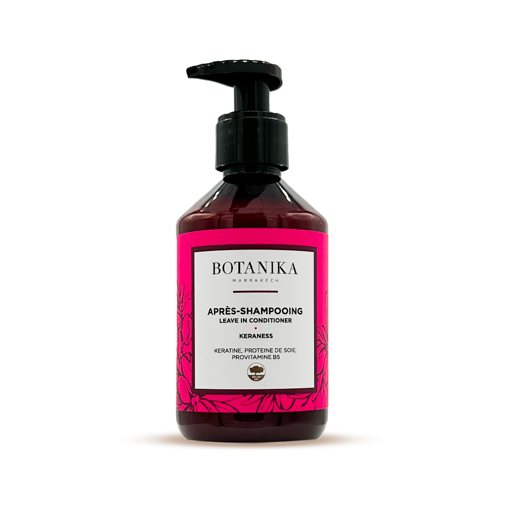 Offrez à vos cheveux une expérience de soin luxueuse avec l'Après-Shampooing Keraness de la gamme Botanika Marrakech. Cette formule riche et fondante associe les bienfaits nourrissants de l'huile d'argan à l'action synergique du complexe naturel de kératine et de la protéine de soie, pour des cheveux brillants et souples.