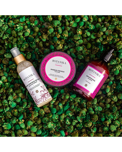 Par sa texture généreuse et moelleuse, le masque pour cheveux aux sept plantes de la gamme Botanika Marrakech répare et fortifie les cheveux et le cuir chevelu. Il conjugue les vertus réparatrices des huiles d'argan et de ricin, à l'effet nourrissant du beurre de karité et de la provitamine B5, combinés à l'extrait de 7 plantes (hamamelis, calendula, saule blanc, racine d'ortie, mauve, graine de lin et feuille de bouleau) pour apporter brillance et tonus à vos cheveux.
