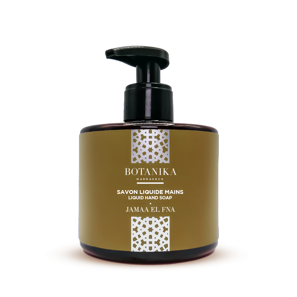 Pour des mains propres et nettes, le savon liquide mains Jemaa El-Fna de la gamme Botanika Marrakech à base d'extrait de feuilles d'arganier et d'extrait de camomille, purifie vos mains et les parfume délicatement tout en respectant l'équilibre naturel de votre peau.