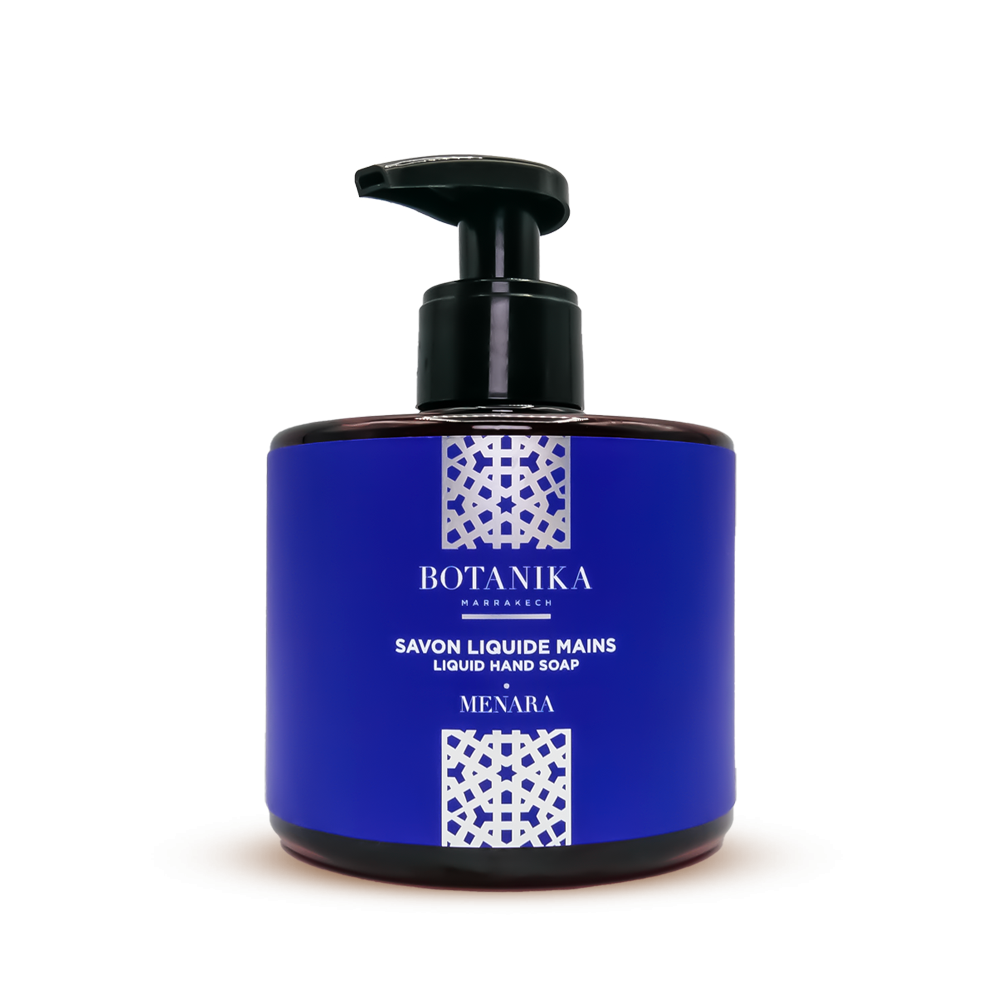 Pour des mains propres et nettes, le savon liquide mains Menara de la gamme Botanika Marrakech à base d'extrait de feuilles d'arganier et d'extrait de camomille, purifie vos mains et les parfume délicatement tout en respectant l'équilibre naturel de votre peau.