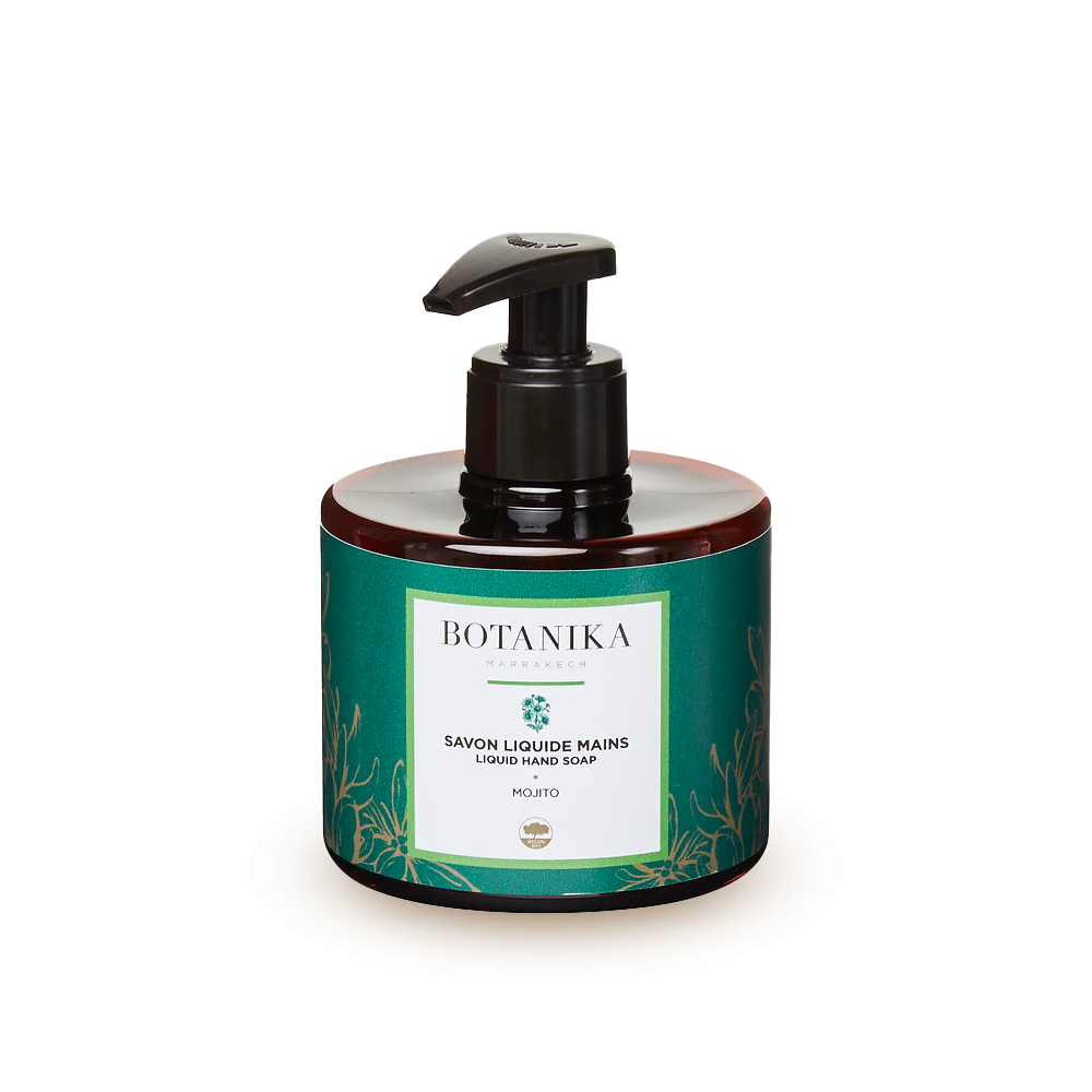 Pour des mains propres et revitalisées, découvrez le Savon Liquide Mains Mojito de la gamme Botanika Marrakech.