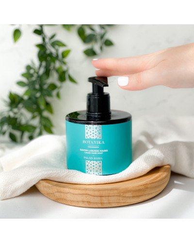 Pour des mains propres et nettes, le savon liquide mains Palais Bahia de la gamme Botanika Marrakech à base d'extrait de feuilles d'arganier et d'extrait de camomille, purifie vos mains et les parfume délicatement tout en respectant l'équilibre naturel de votre peau.