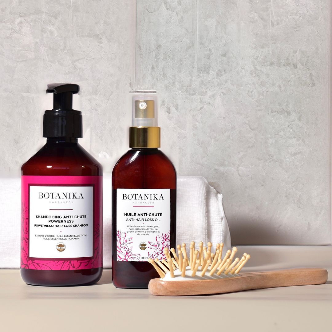 Découvrez le secret pour des cheveux forts et en pleine santé avec le Shampoing Antichute Powerness de la gamme Botanika Marrakech. Cette formule spécifique, enrichie en extraits d'ortie et de feuilles d'arganier, associée aux bienfaits des meilleures huiles essentielles (lavande, romarin et thym), combat efficacement la chute des cheveux tout en purifiant le cuir chevelu en profondeur. Préparez-vous à une expérience de soin intensif pour des cheveux visiblement plus forts et revitalisés.