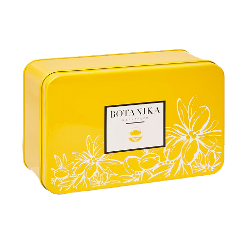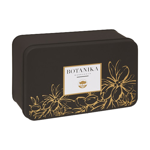 La boîte est fabriquée à partir de métal de haute qualité et possède une finition argentée élégante qui ajoute une touche de sophistication à toute pièce où elle est exposée. Facile à ranger dans une salle de bain, cette boîte en métal est également une excellente idée de cadeau pour vos amis et votre famille qui apprécient la beauté et le bien-être. Offrez-leur cette boîte comme cadeau, et ils seront ravis de découvrir les bienfaits de nos produits de soin de la peau Botanika Marrakech.