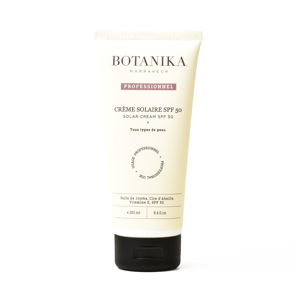 La Crème Solaire Pro SPF 50 de Botanika Marrakech offre une haute protection contre les rayons UV tout en hydratant et nourrissant la peau.